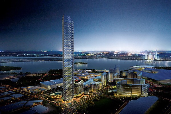 苏州国金中心集集甲*写字楼、可饱览苏州市全景的五星*天际酒店(尼依格罗Niccolo)及豪华公寓、波浪形广场于*体,预计2017年落成。