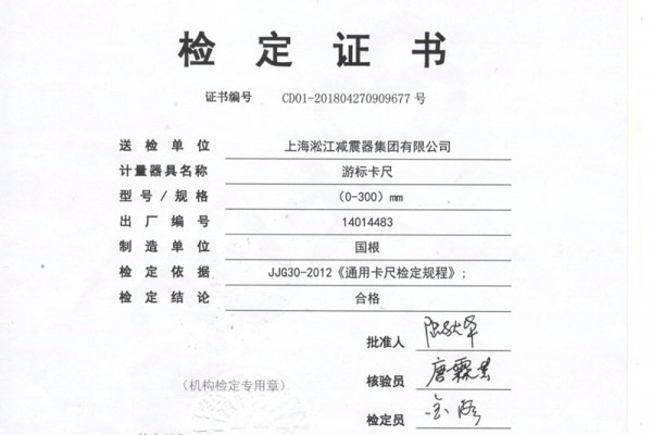 上海淞江集团旗下网站为您介绍:「2018」游标卡尺检测证书,信息真实可靠,盗版违用必究。淞江集团专业生产各种可曲挠橡胶补偿接头产品,以下是我厂游标卡尺2018年的鉴定报告。